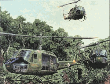 The 187th did it all. Its lift ships carried troops into battle, expeditiously extracted them from harms way, provided food, water, ammunition, mail and reinforcements. They also supported the fight by carrying the critical command and control element circling above the battle. Whenever the 187th was needed, the distinctive blades of the Huey were heard Platoons, with an M-60 machine gun in each rear door, were commonly called "Slicks" and carried eight to ten troops on combat assaults into jungle landing zones (LZs.) When forces on the ground required assistance, the "Slicks" or "Guns" and their dedicated and fearless crews, flew into harms way to provide critical support. This support varied from providing close in mini-gun and rocket fire, to evacuating the critically wounded.